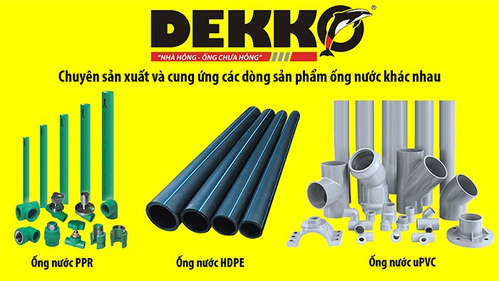 Tập Đoàn DEKKO là nhà sản xuất và cung cấp các loại ống nhựa PPR, uPVC, HDPE, ống chống tia UV, ống tưới nhỏ giọt... mang thương hiệu DEKKO với đa dạng các chủng loại và kích thước phong phú đủ đáp ứng mọi cho mọi nhu cầu về cấp và thoát nước.