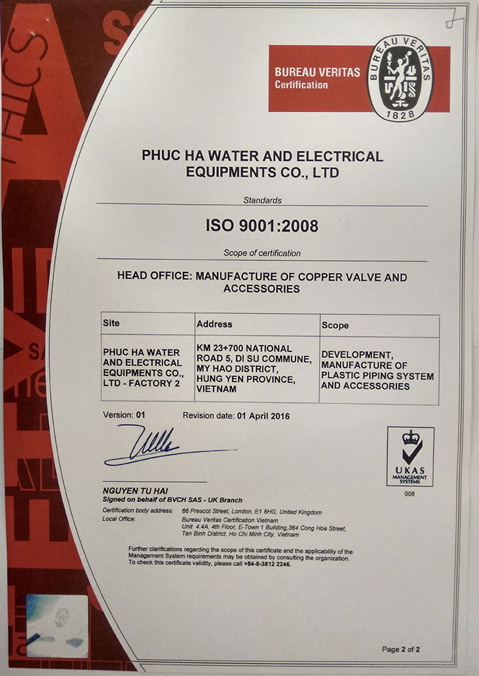 The factory of DEKKO Group Joint Stock Company has achieved ISO 9001:2008 standard, which is the factory at Location: Km 23+700, National Highway 5, in Di Su commune, My Hao district, Hung Yen province.