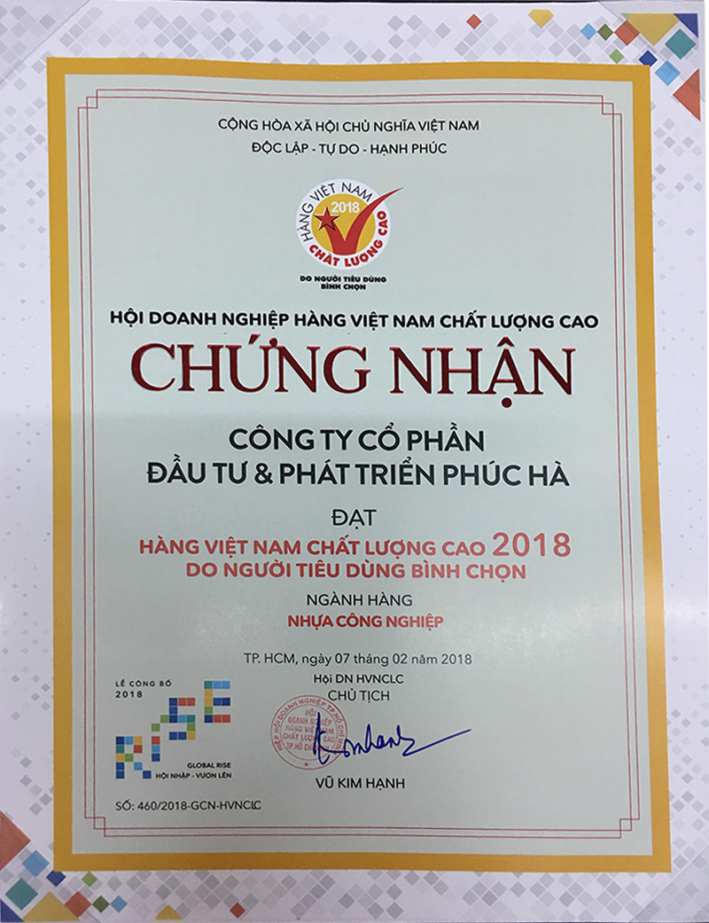 Minh chứng cho điều này đó là 3 giải thưởng hàng Việt Nam chất lượng cao vào năm 2010, 2015, 2018 và nhiều giải thưởng cao quý khách được đảng và nhà nước, các cơ quản có thẩm quyền chứng nhận trao tặng.